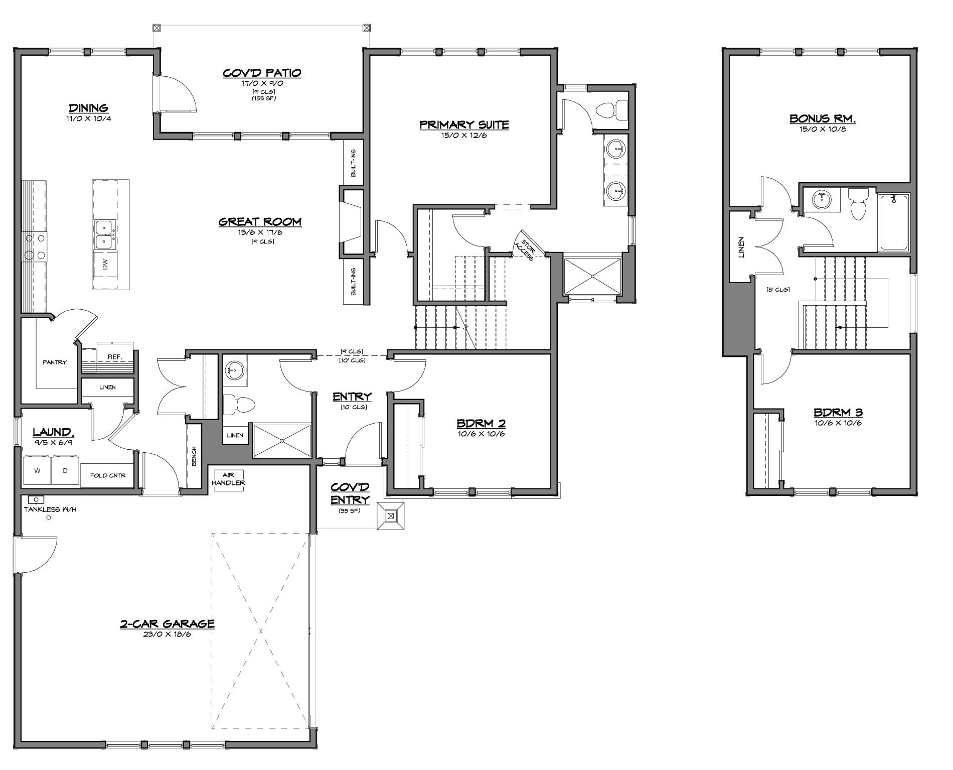 The Cedar features 3 bedrooms, 2.5 bathrooms and a 2-car garage. This home’s premium features include stainless steel appliances, a covered patio and fully landscaped and fenced yard.