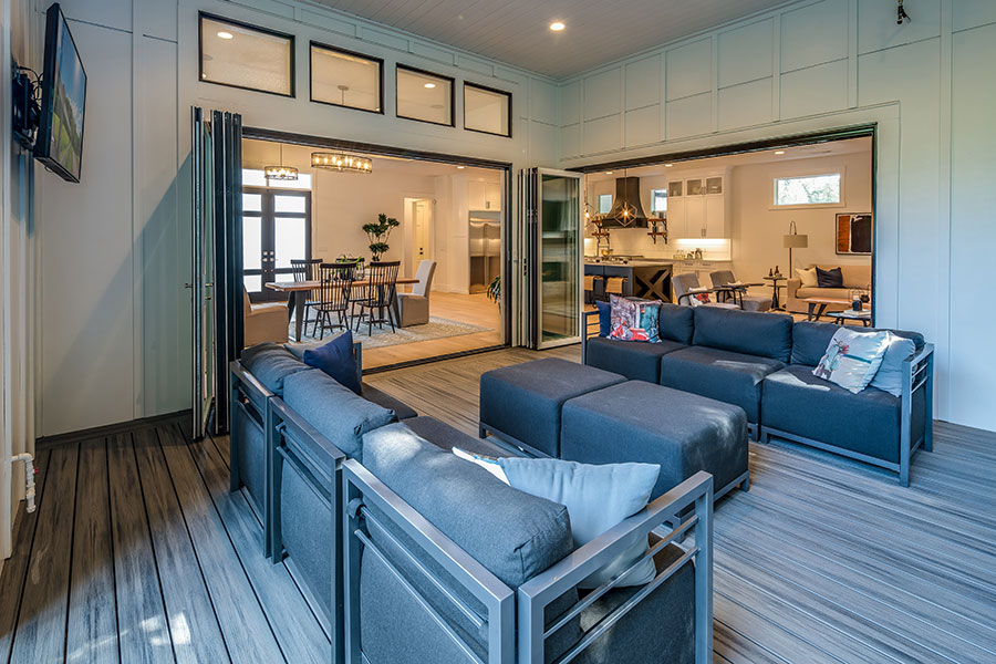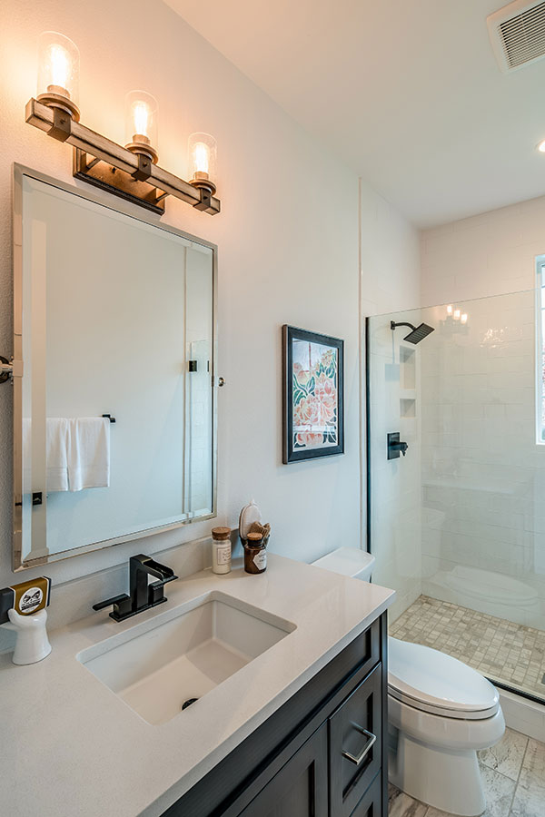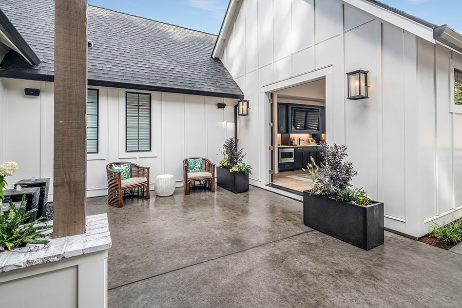 The 3287 square ft Parade of Homes “Best of Show” Farmhouse was created with entertaining in mind and offers four bedrooms, 3.5 bathrooms, a guest house and multiple living spaces. The residence is set around a central courtyard that leads into the spacious living area. The open-concept layout has been specifically designed to bring tranquil bright undertones into the home and create a welcoming space year-round. There is a functional flow to the floor plan that encourages gathering.