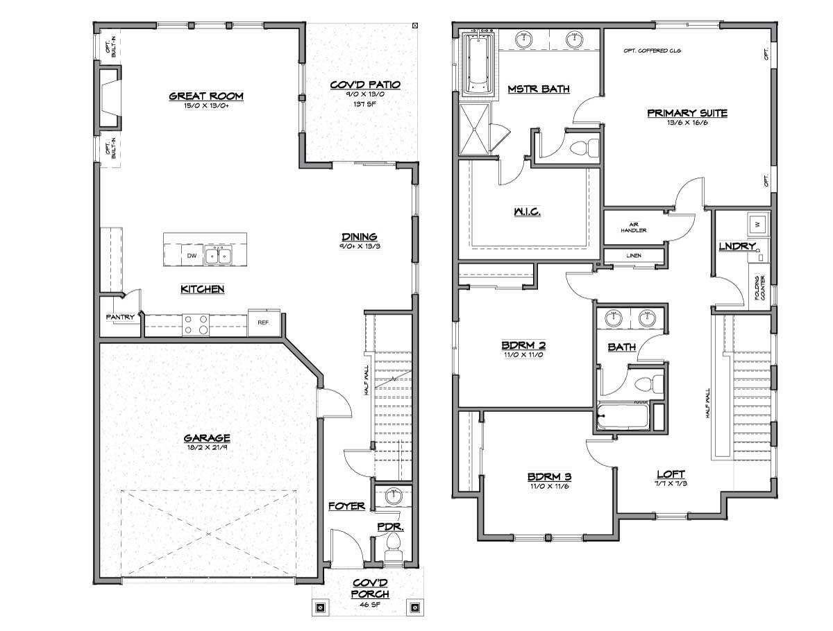 The Dover features 3 bedrooms, 2.5 bathrooms and premium features including, quartz countertops, fully wrapped and painted windows, covered patio and a fully landscaped and fenced yard.