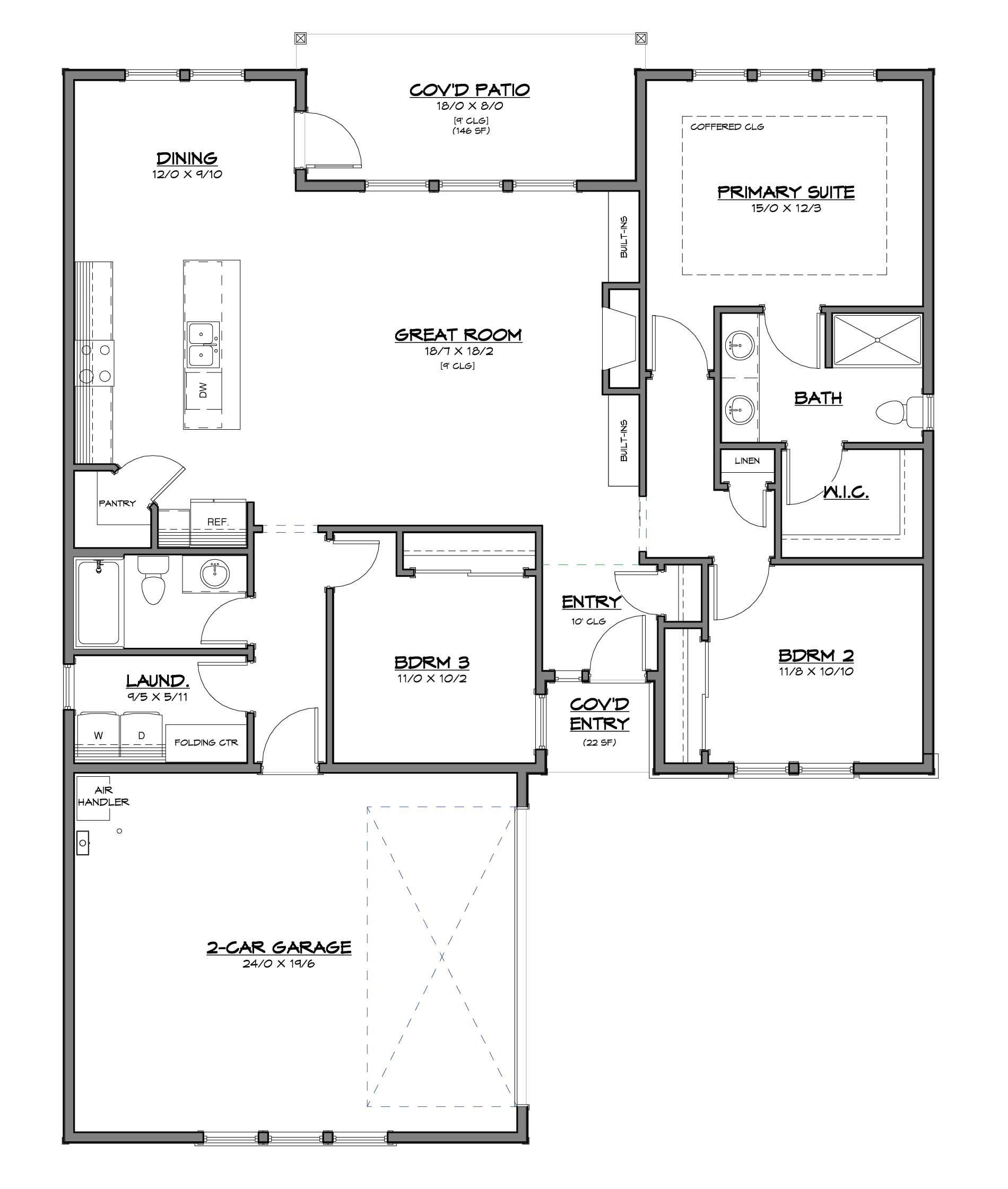 The Mapleton features 3 bedrooms, 2 bathrooms and a 2-car garage. Available in Northwest and Farmhouse elevations.