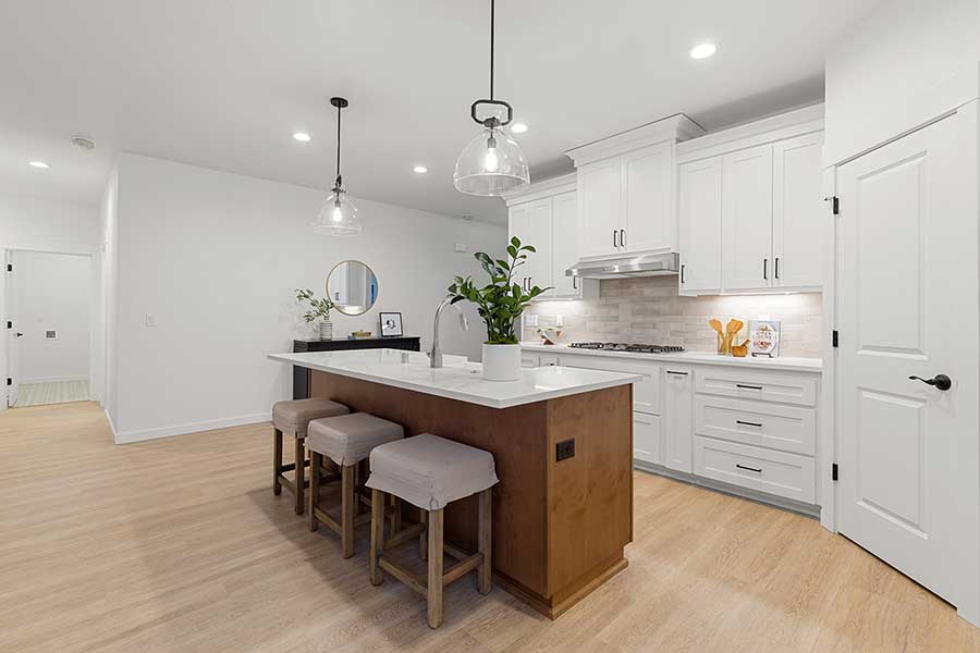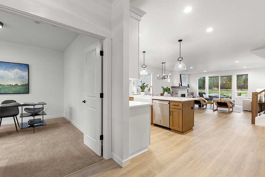 The Richfield features 3 bedrooms, 3 bathrooms, an office and premium features including, quartz countertops, fully wrapped and painted windows, covered patio and a fully landscaped and fenced yard.