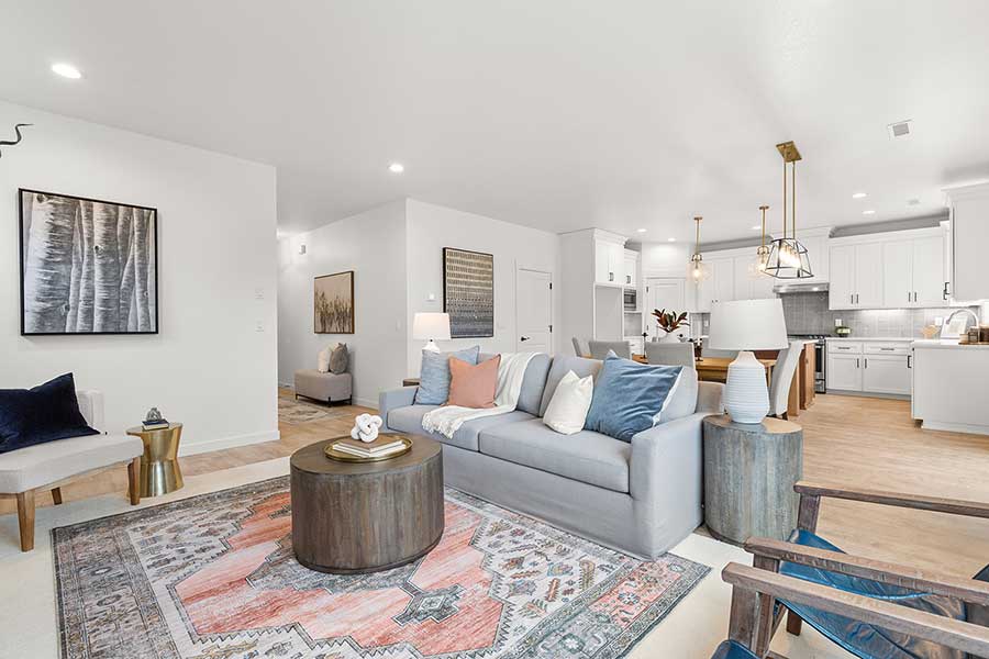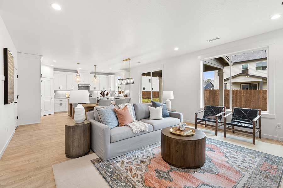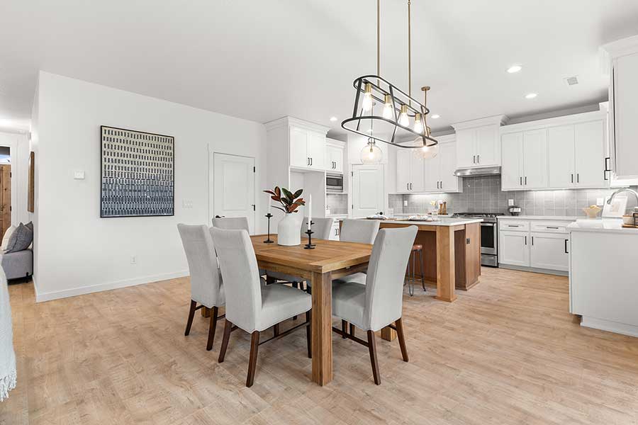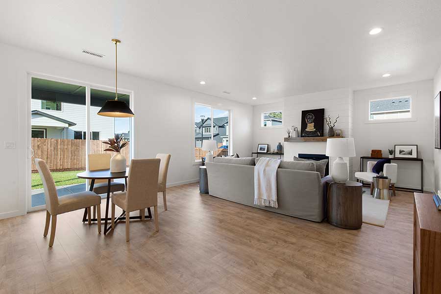 The Windsted features 4 bedrooms, 2.5 bathrooms and premium features including, quartz countertops, fully wrapped and painted windows, covered patio and a fully landscaped and fenced yard.
